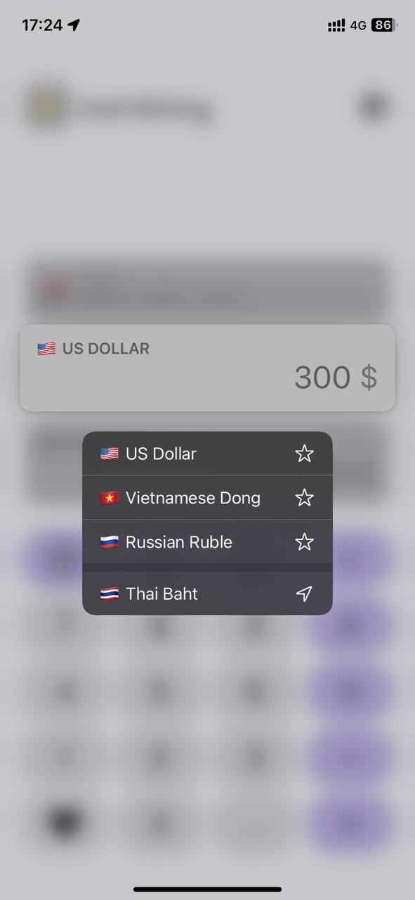 Вы можете добавлять валюты в избранное, делая свайп влево в общем списке валют.